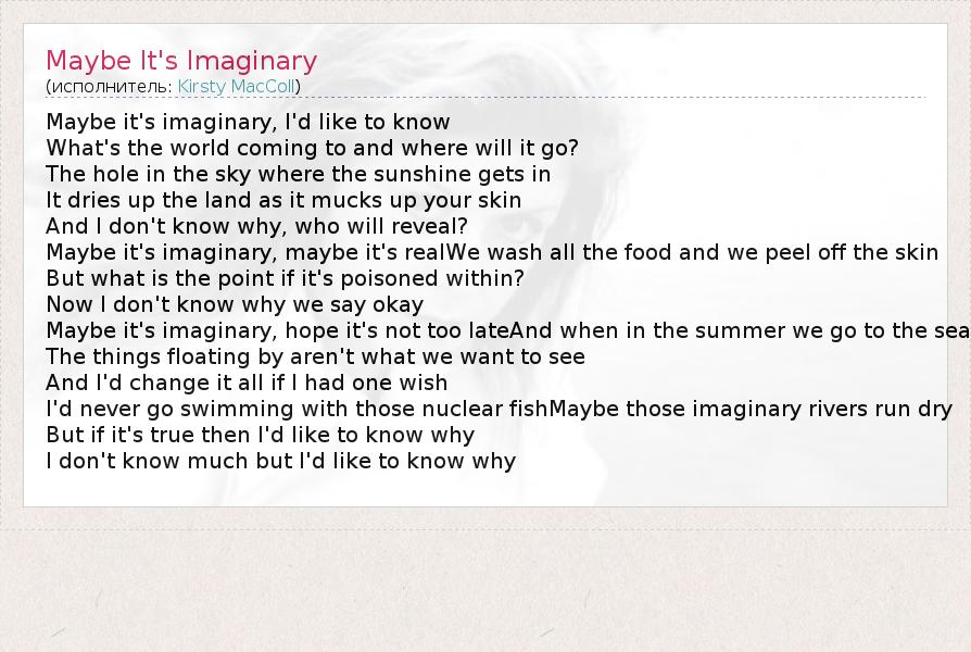 А как ты думаешь, о чем песня "Maybe It's Imaginary" ?