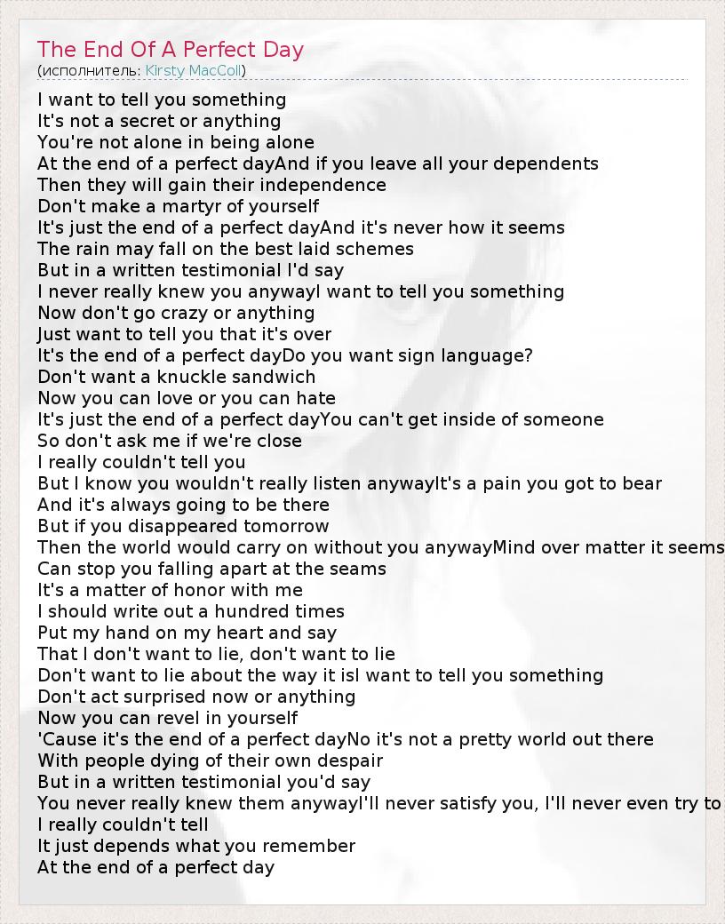 А как ты думаешь, о чем песня "The End Of A Perfect Day" ?