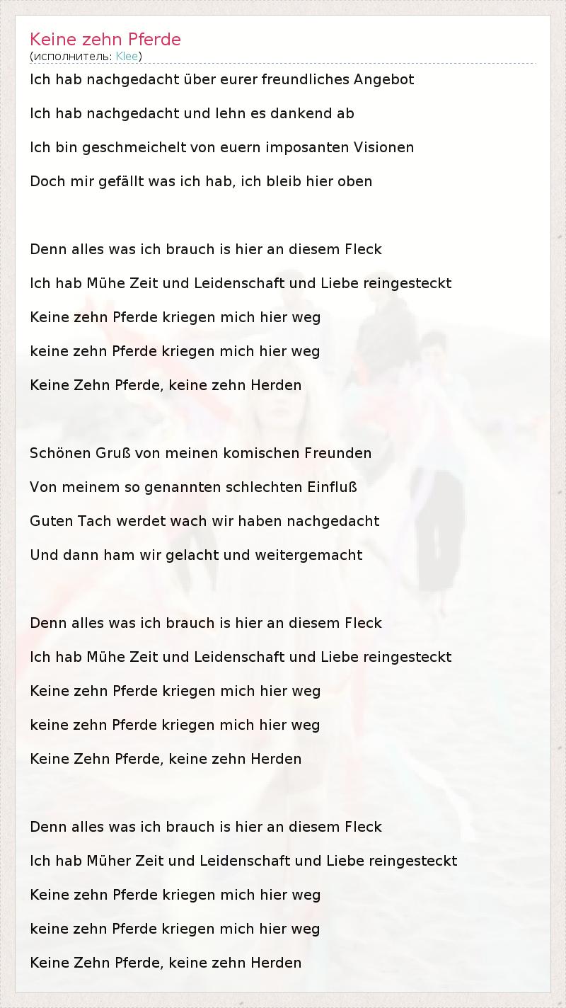 А как ты думаешь, о чем песня "Keine zehn Pferde" ?