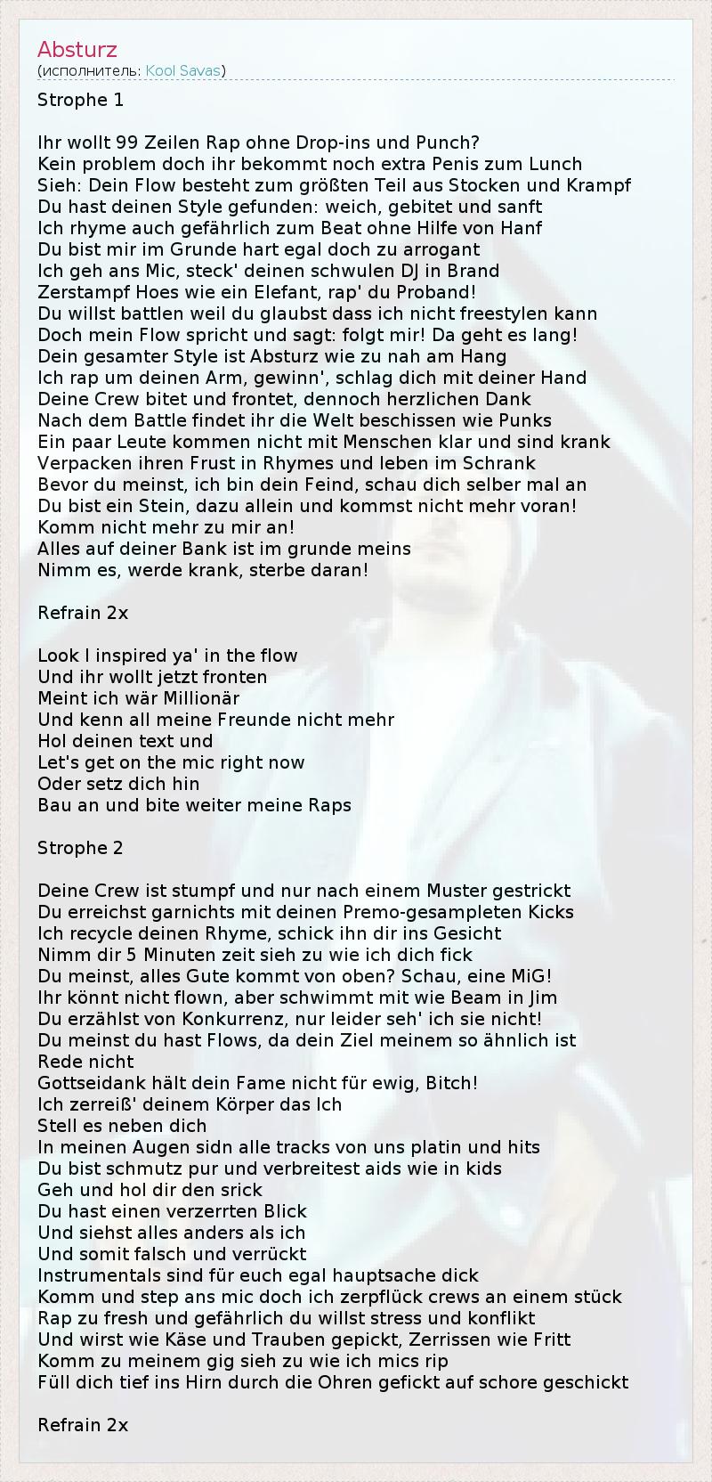 Rap zu fresh und gefährlich du willst stress und konflikt