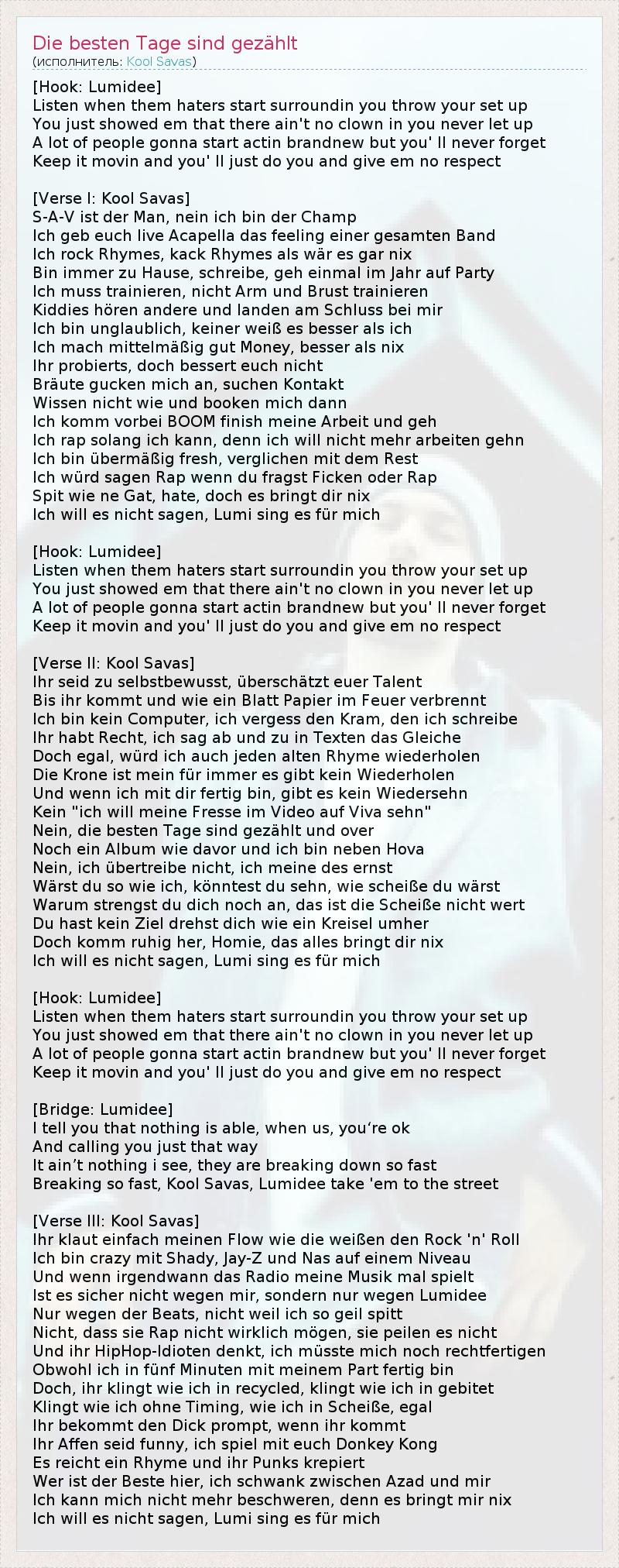 А как ты думаешь, о чем песня "Die besten Tage sind gezählt" ?