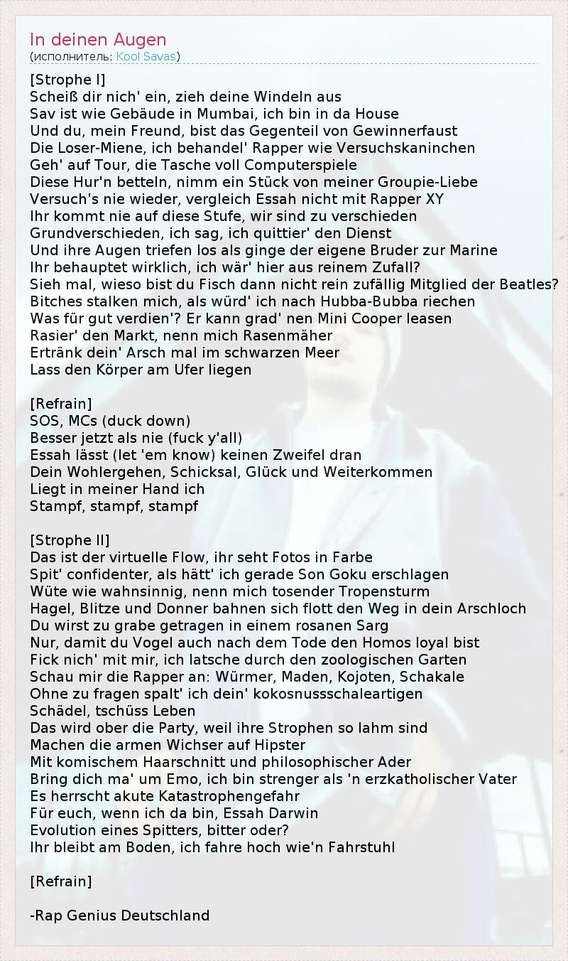 А как ты думаешь, о чем песня "In deinen Augen" ?