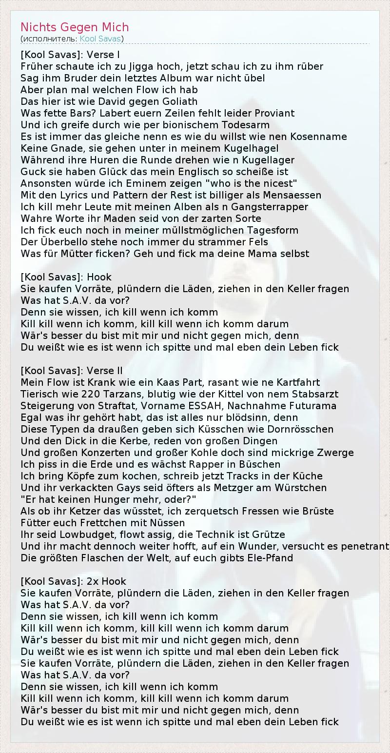 А как ты думаешь, о чем песня "Nichts Gegen Mich" ?