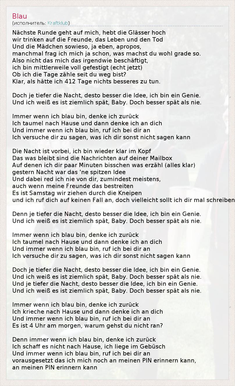 Denn immer wenn ich blau bin, denke ich zurück