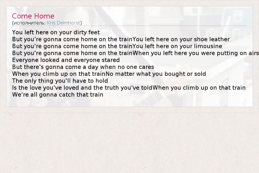 But you're gonna come home on the trainWhen you left here you were putting on airs