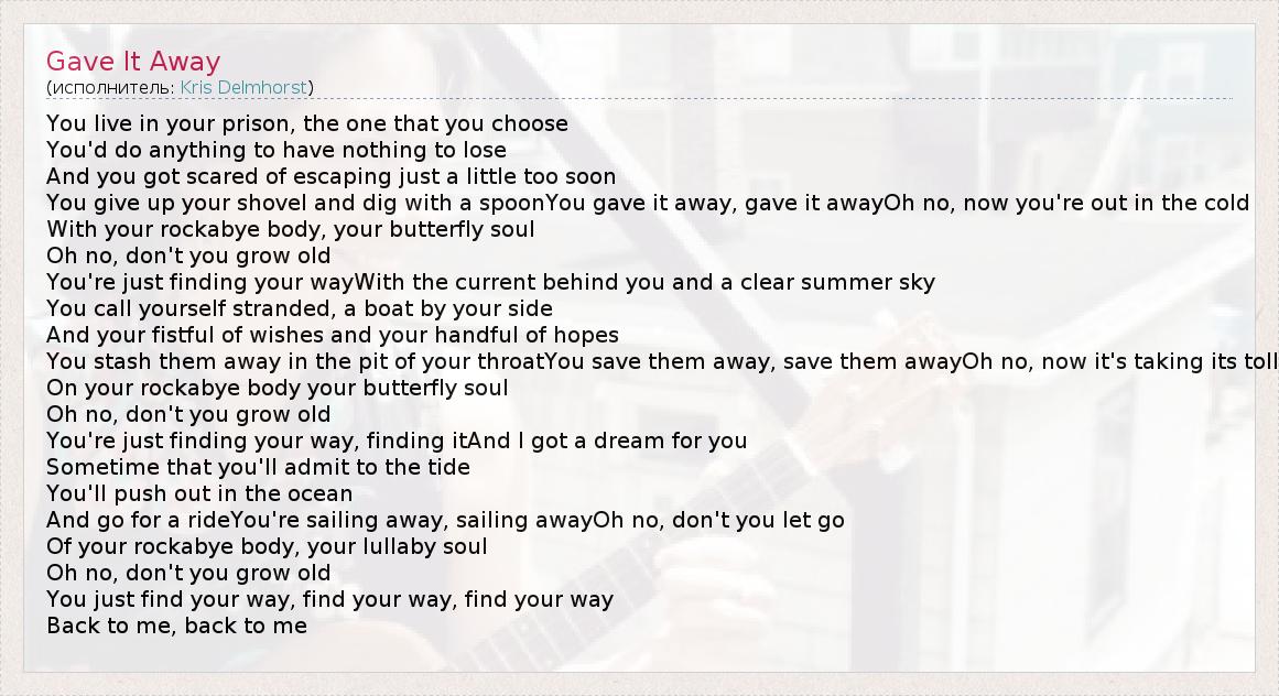 А как ты думаешь, о чем песня "Gave It Away" ?