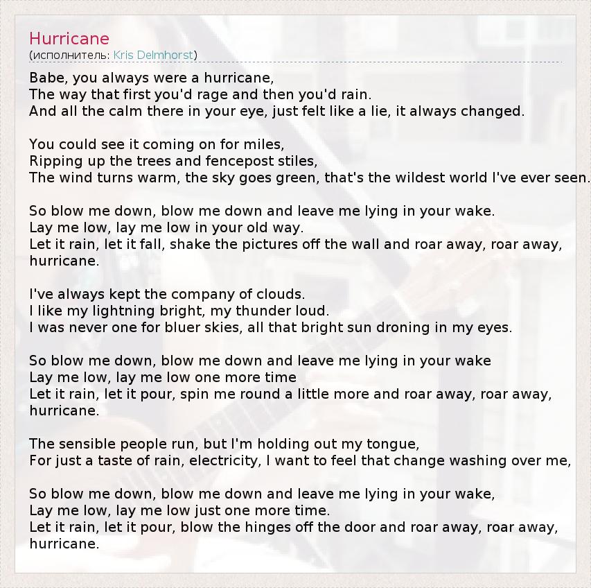 Let it rain, let it pour, blow the hinges off the door and roar away, roar away,
