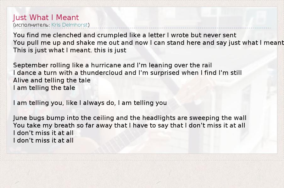 А как ты думаешь, о чем песня "Just What I Meant" ?