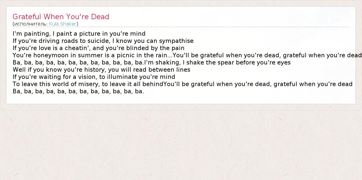 А как ты думаешь, о чем песня "Grateful When You're Dead" ?