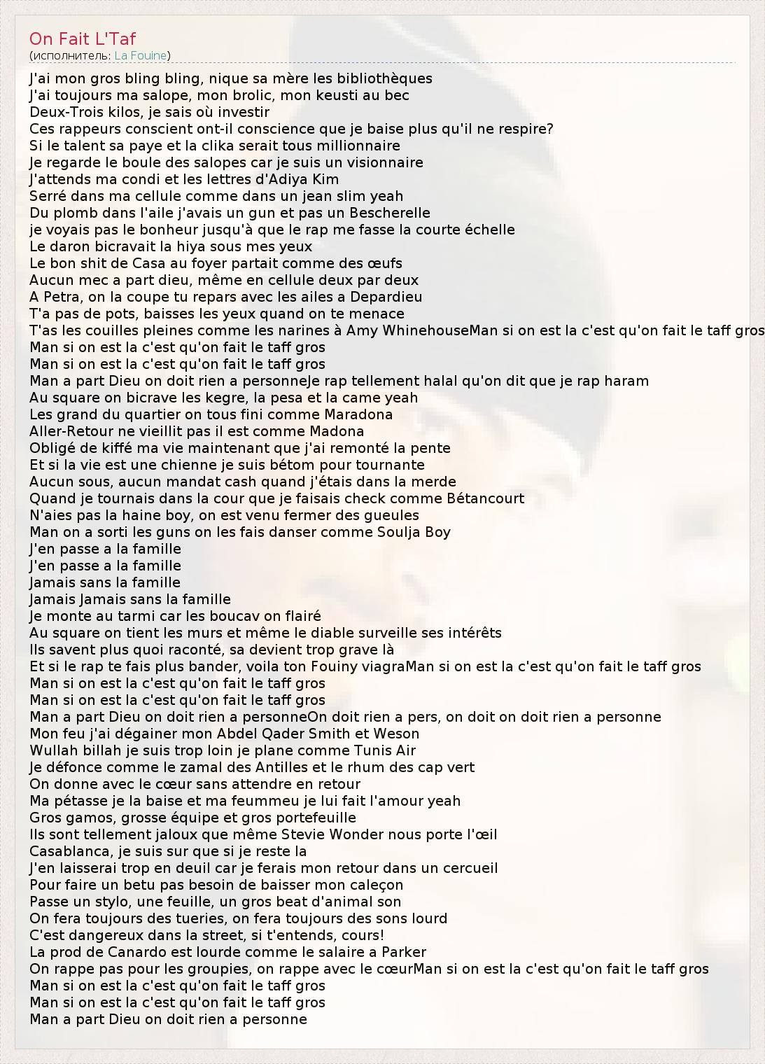 А как ты думаешь, о чем песня "On Fait L'Taf" ?