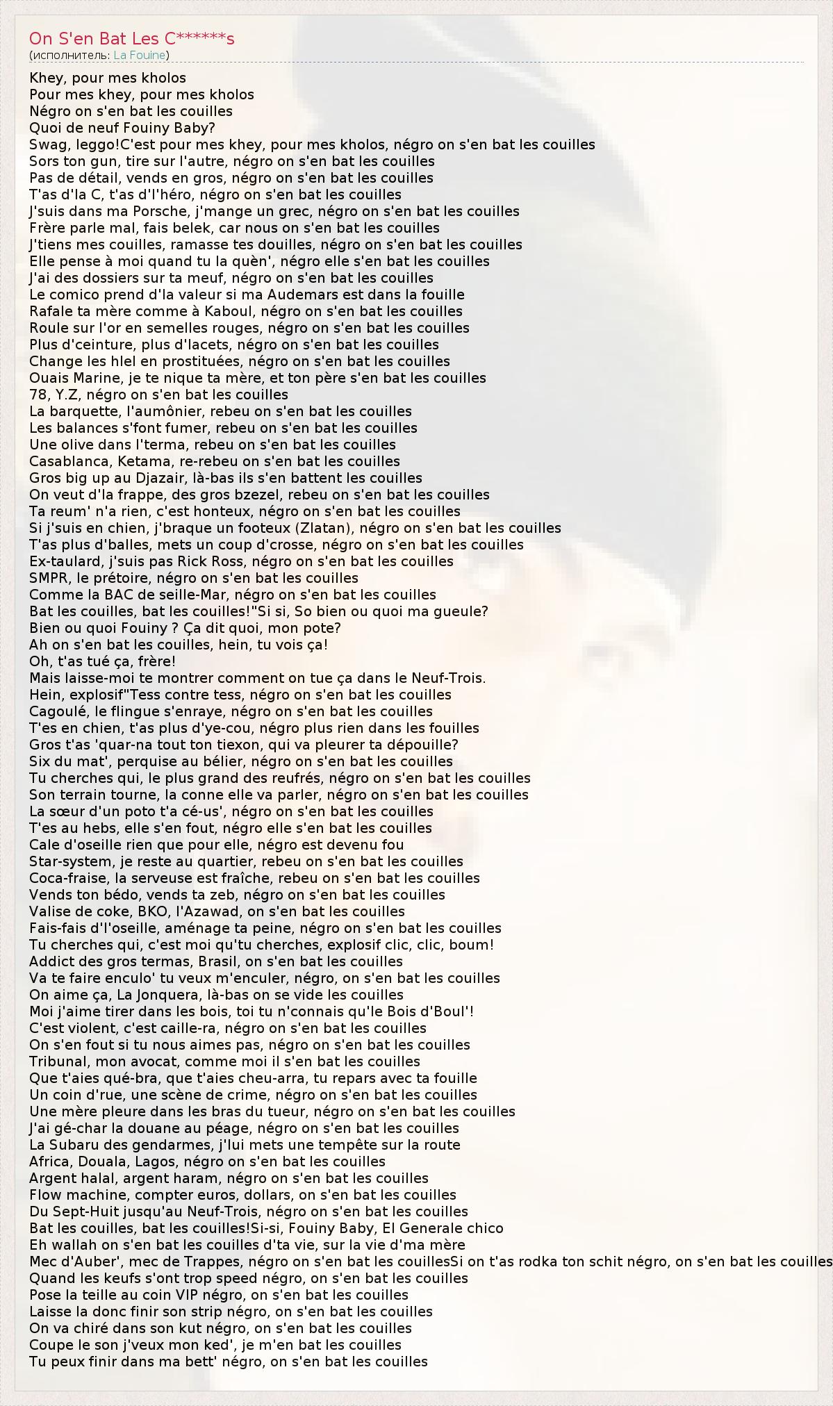 ГлавнаяИсполнителиLa FouineOn S'en Bat Les C******s