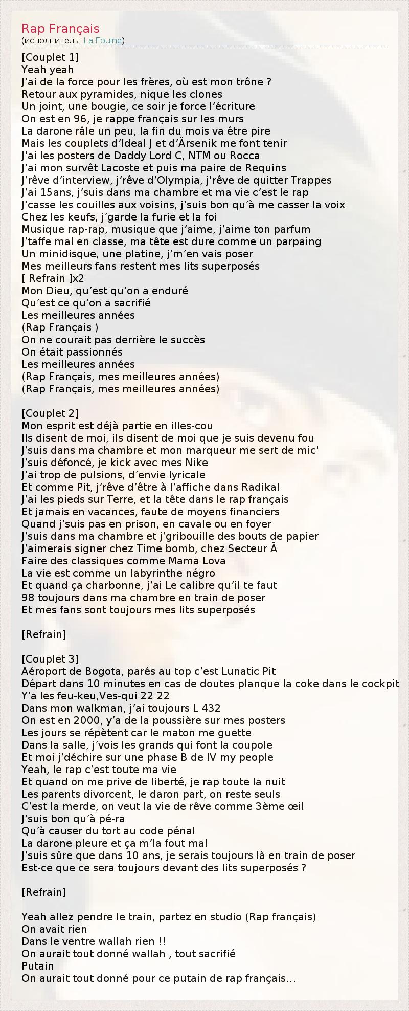 А как ты думаешь, о чем песня "Rap Français" ?