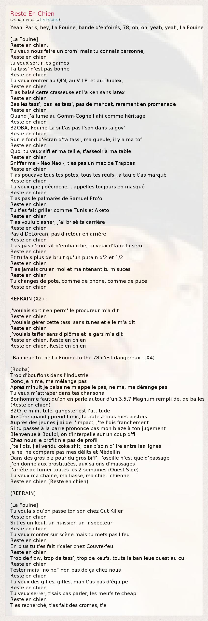 А как ты думаешь, о чем песня "Reste En Chien" ?