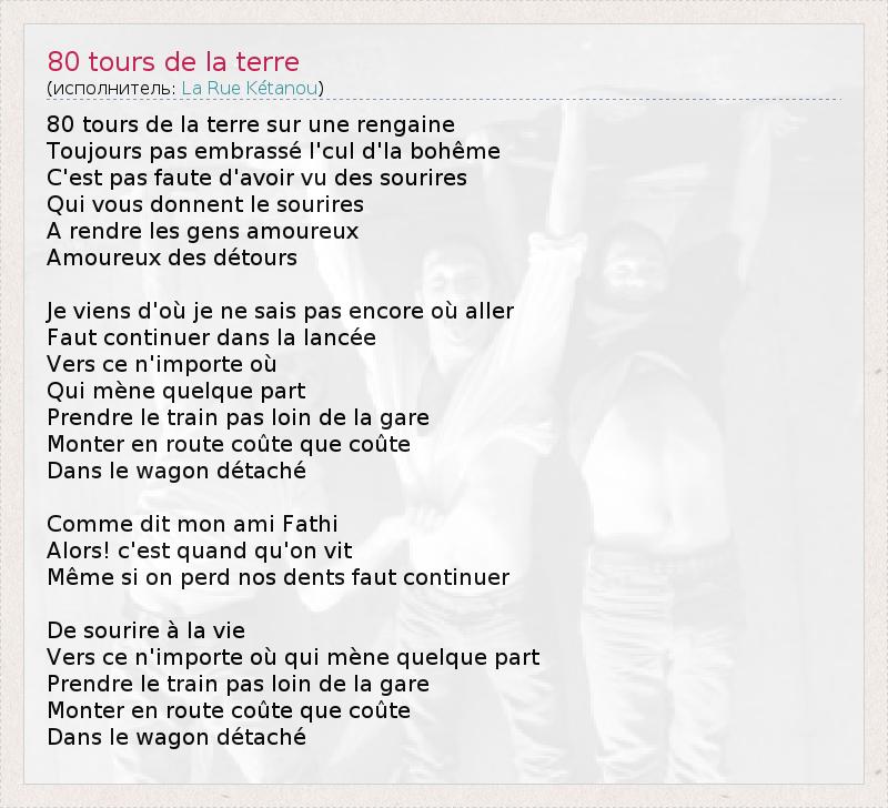 А как ты думаешь, о чем песня "80 tours de la terre" ?