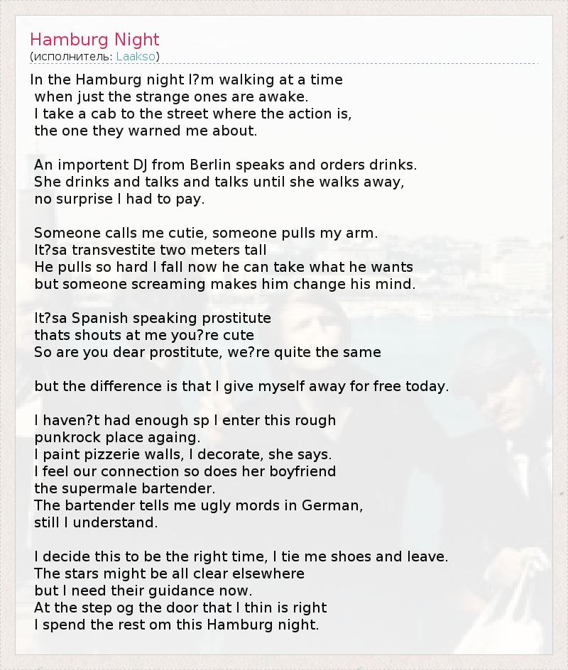 А как ты думаешь, о чем песня "Hamburg Night" ?