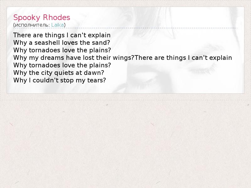 А как ты думаешь, о чем песня "Spooky Rhodes" ?