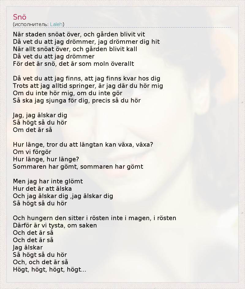 Это интересно:Лале (Laleh) (настоящее имя Лале Пуркарим (Laleh Pourkarim) родилась 10 июня 1982 года в Иране.Лале - ирано-шведская певица и автор песен. Она приехала в Швецию, когда ей было 12 лет, и училась в школе Ангред г. Гетеборга. До этого она жила в Азербайджане и в Минске (Беларусь). Она лично продюсировала и написала альбом в 2005 году ("Laleh"), в котором она пела на 3 языках - английском, шведском и персидском.... продолжение