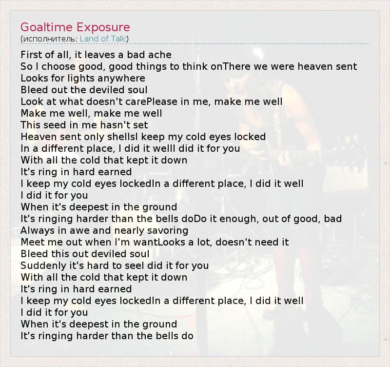 А как ты думаешь, о чем песня "Goaltime Exposure" ?