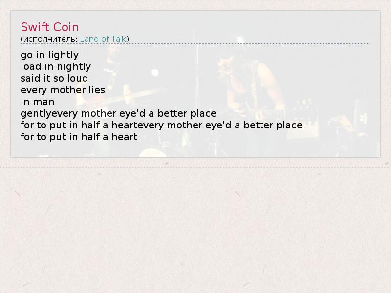 А как ты думаешь, о чем песня "Swift Coin" ?