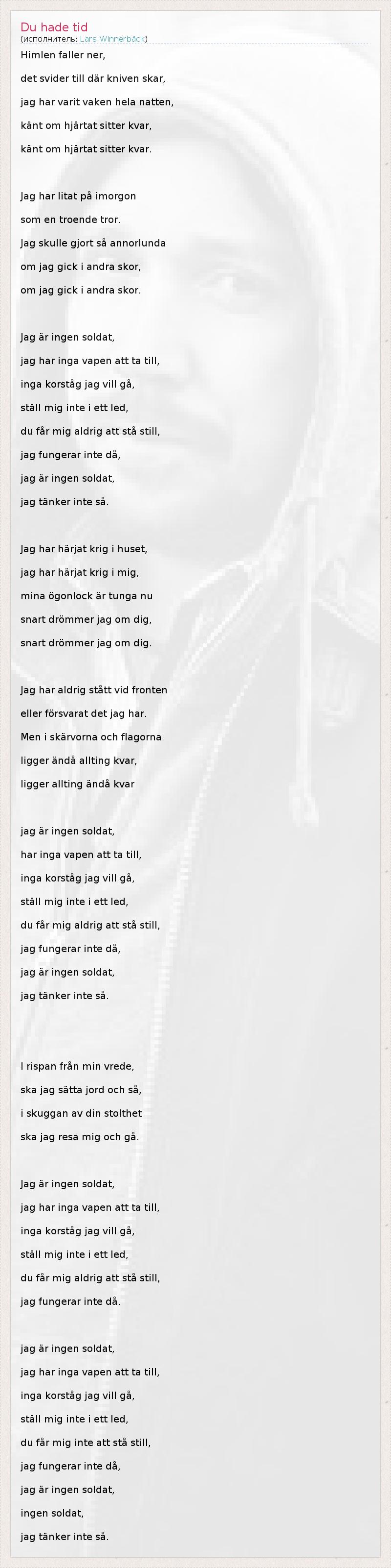 А как ты думаешь, о чем песня "Du hade tid" ?