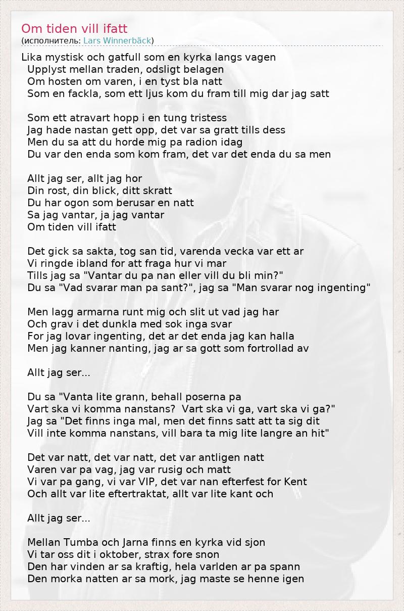 А как ты думаешь, о чем песня "Om tiden vill ifatt" ?