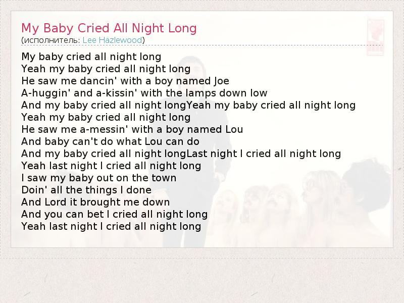А как ты думаешь, о чем песня "My Baby Cried All Night Long" ?