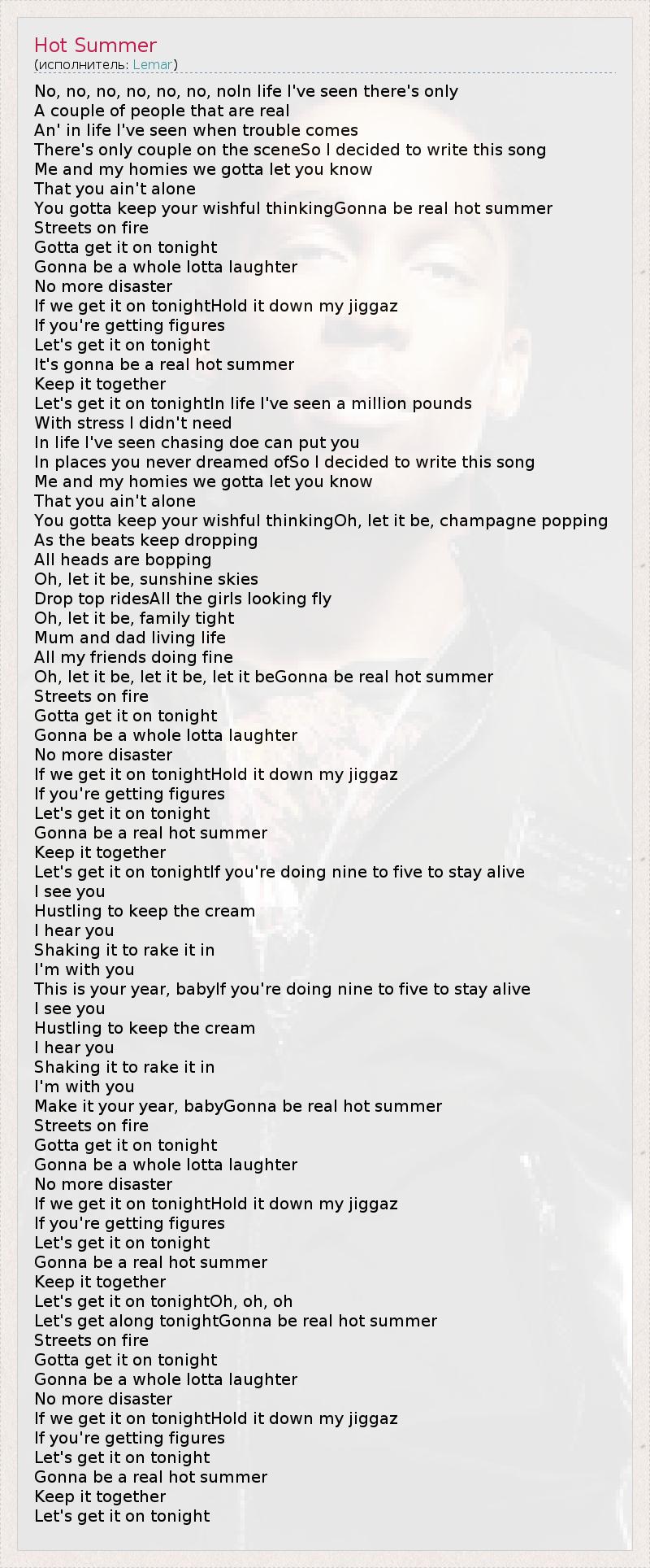 А как ты думаешь, о чем песня "Hot Summer" ?