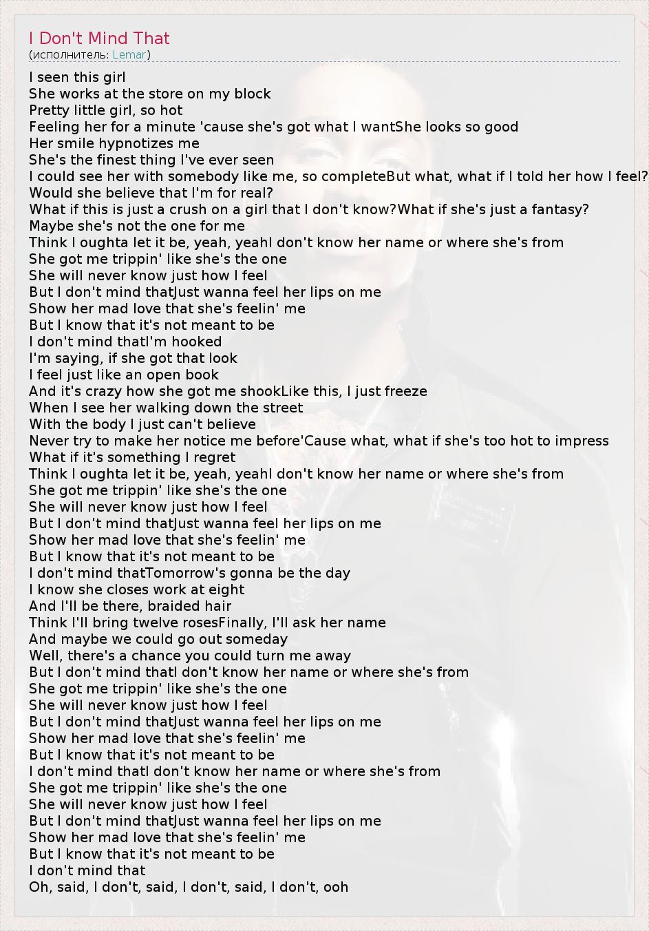 А как ты думаешь, о чем песня "I Don't Mind That" ?