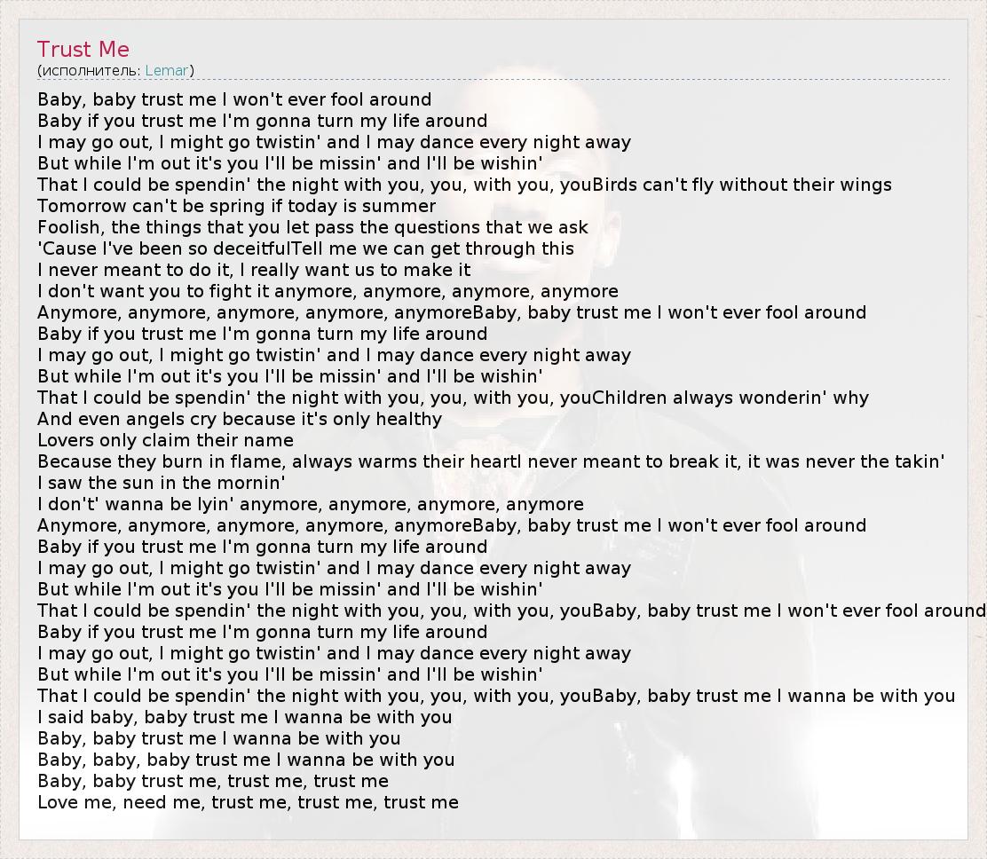 Baby, baby trust me, trust me, trust me