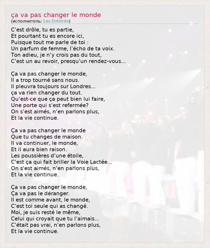 А как ты думаешь, о чем песня "ça va pas changer le monde" ?
