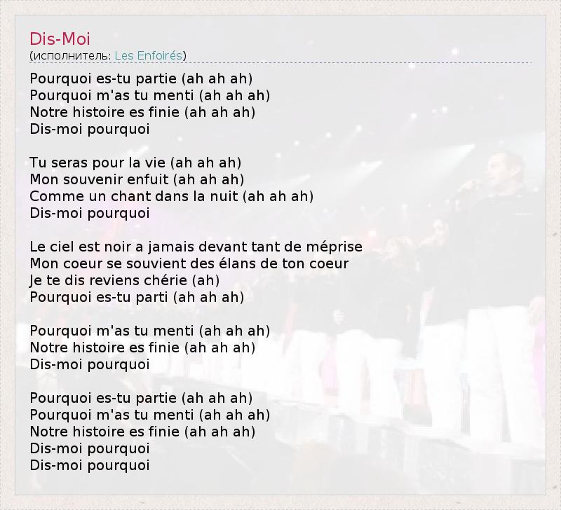 А как ты думаешь, о чем песня "Dis-Moi" ?