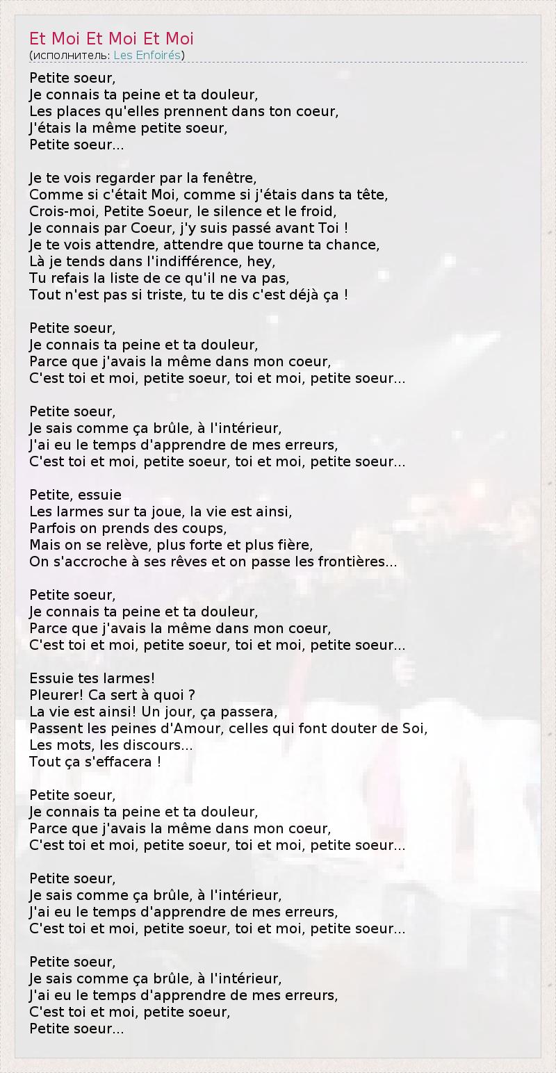 А как ты думаешь, о чем песня "Et Moi Et Moi Et Moi" ?
