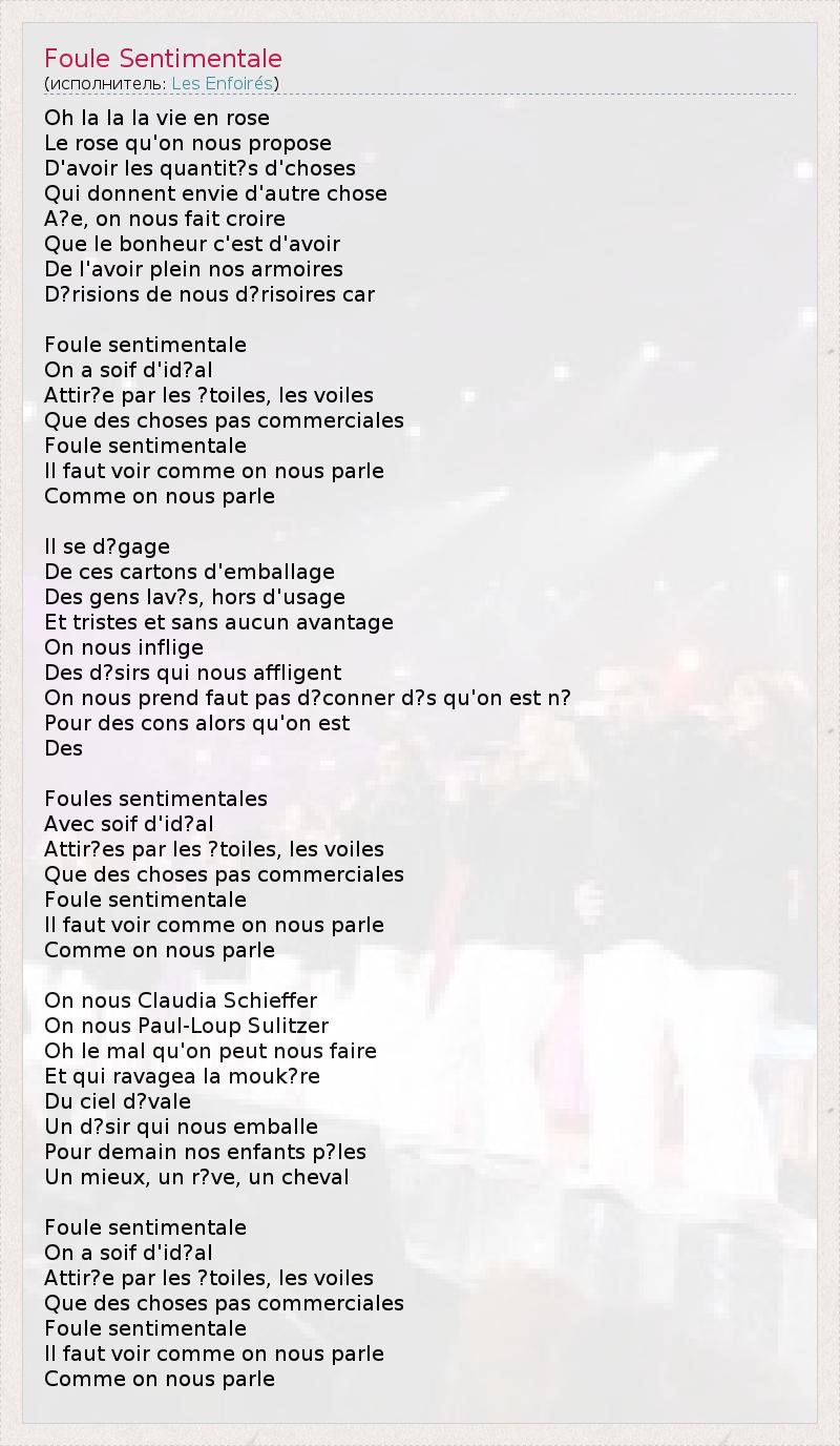 А как ты думаешь, о чем песня "Foule Sentimentale" ?