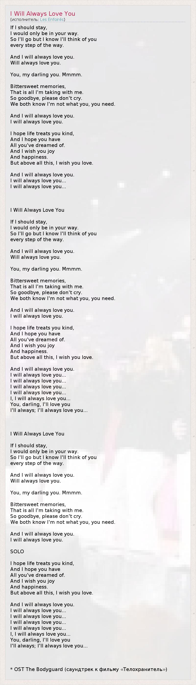 Я всегда буду любить тебя (перевод Алексей Макеев из Санкт-Петербурга)