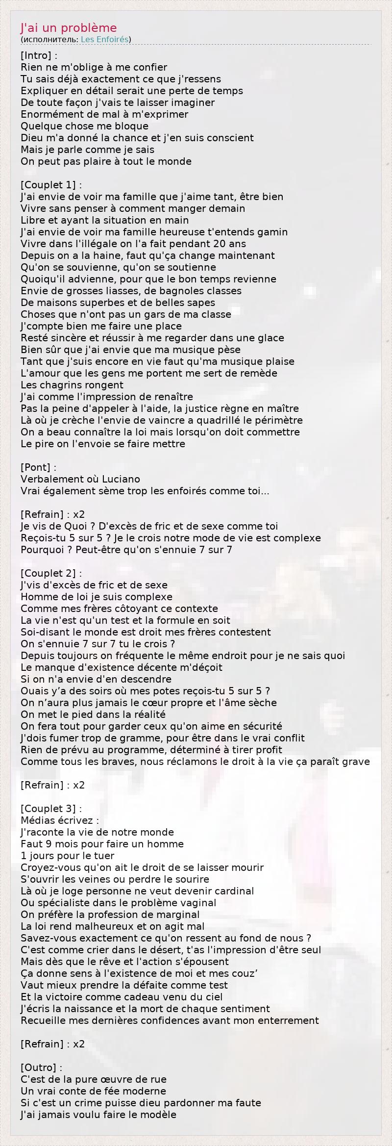 А как ты думаешь, о чем песня "J'ai un problème" ?