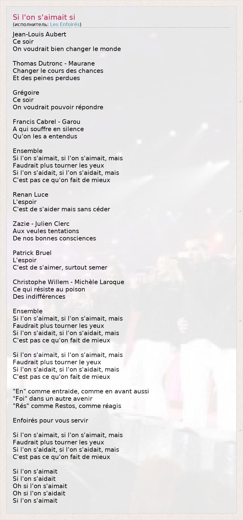 А как ты думаешь, о чем песня "Si l'on s'aimait si" ?