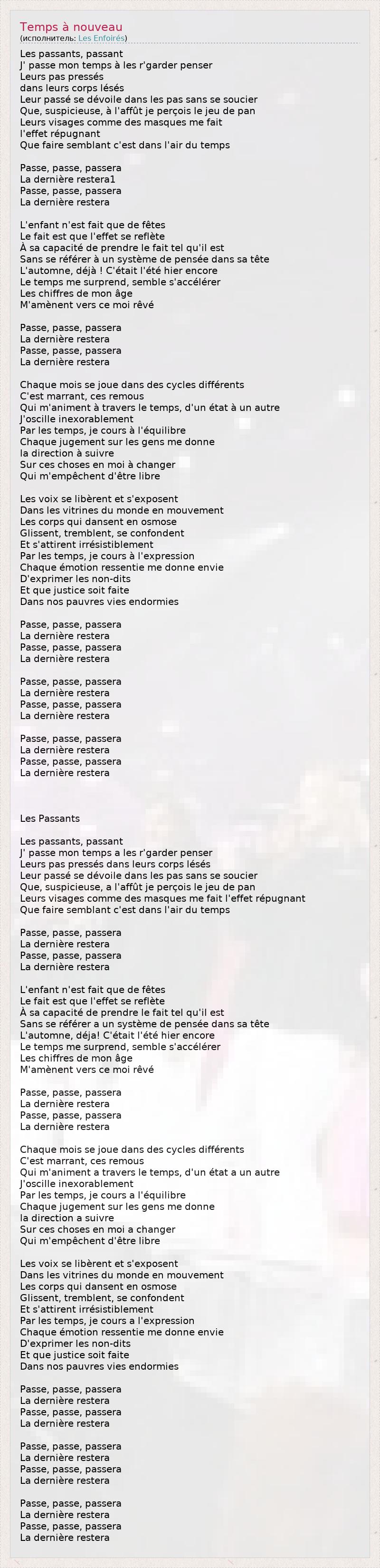 А как ты думаешь, о чем песня "Temps à nouveau" ?