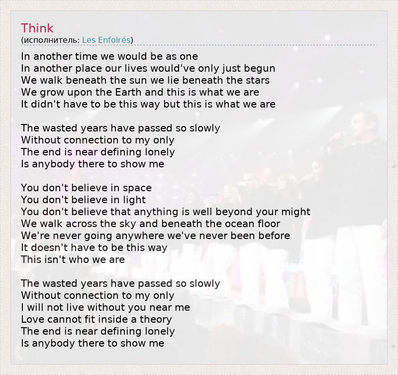 Это интересно:"Les Enfoirés" (Лез Анфуаре) ("Глупцы") - одно из замечательнейших событий в жизни французской музыки. Ежегодно группа артистов собирается вместе, чтобы дать серию благотворительных концертов. Собранные средства направляются в фонд "Ресторанчиков сердца" ("Restaurants de coeur"), в которых нищие и обездоленные всегда могут найти порцию вкусного и бесплатного обеда.Идея создания... продолжение
