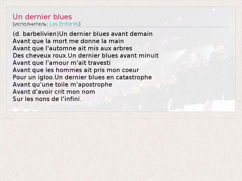 А как ты думаешь, о чем песня "Un dernier blues" ?