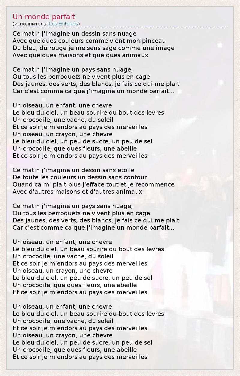 А как ты думаешь, о чем песня "Un monde parfait" ?