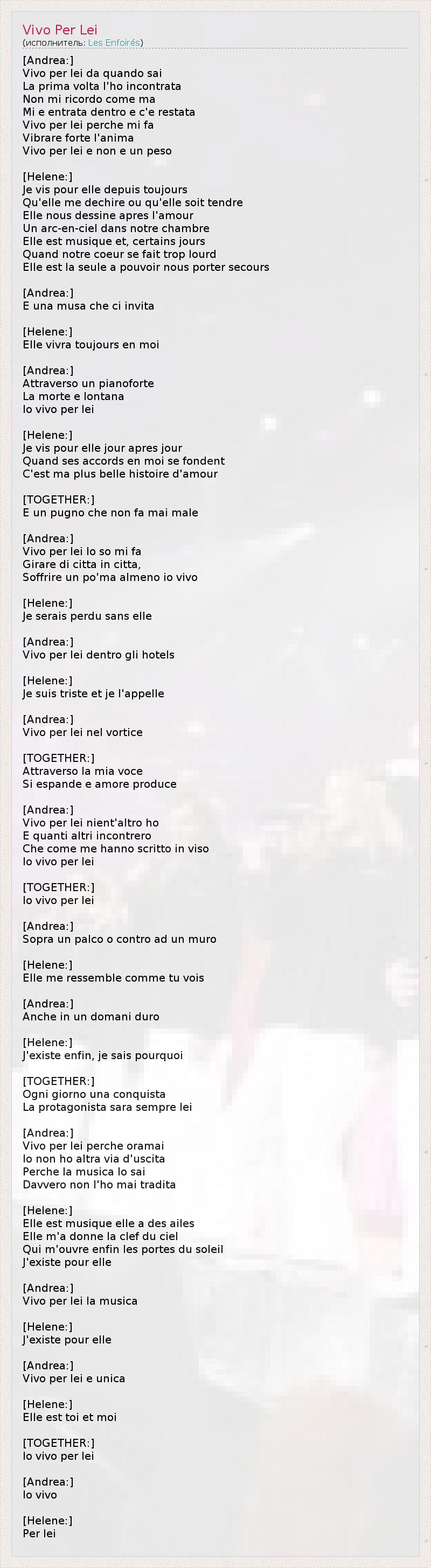 А как ты думаешь, о чем песня "Vivo Per Lei" ?