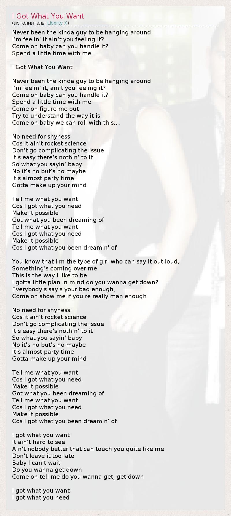 А как ты думаешь, о чем песня "I Got What You Want" ?