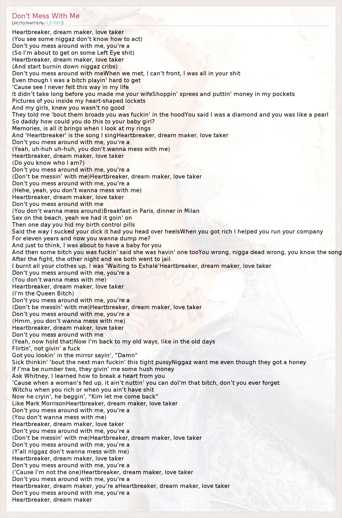 А как ты думаешь, о чем песня "Don't Mess With Me" ?