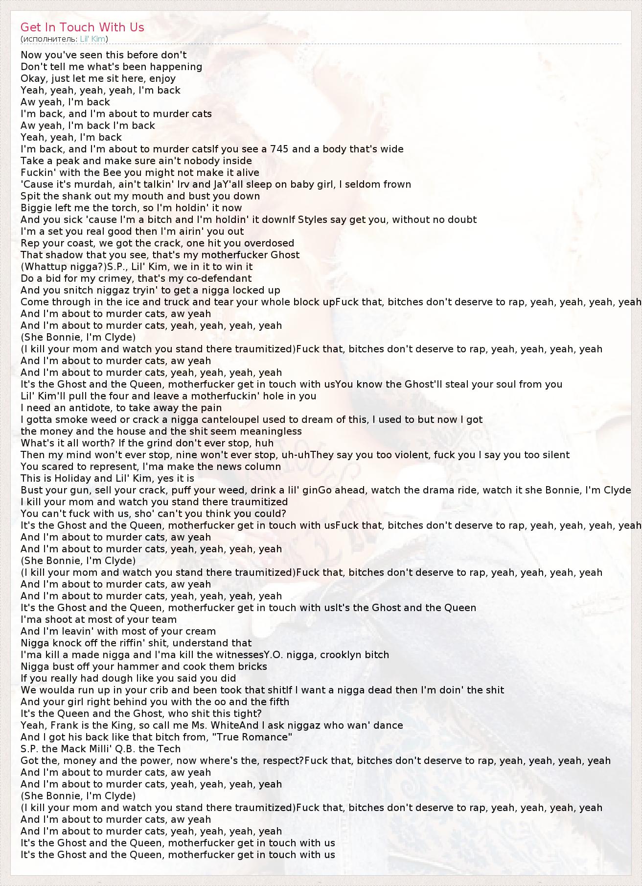 Lil' Kim'll pull the four and leave a motherfuckin' hole in you