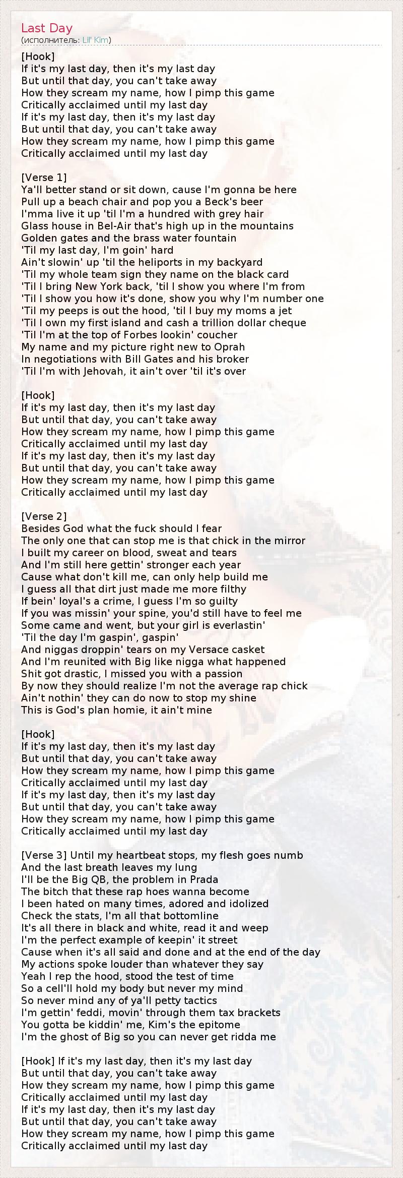 Это интересно:Имя: Kimberly Denise Jones.Псевдоним: Lil' Kim.Дата и место рождения: 11 июля 1975 года, Бруклин, Нью-Йорк.После развода родителей, когда Ким было 9 лет, она стала жить с отцом. Изначально Ким и ее старший брат Кристофер, жили с матерью, до тех пор, пока опека над детьми не была передана её отцу. Ким была непослушным ребёнком, но ей приходилось жить по строгим правила её отца, из-за чего, они постоянно... продолжение