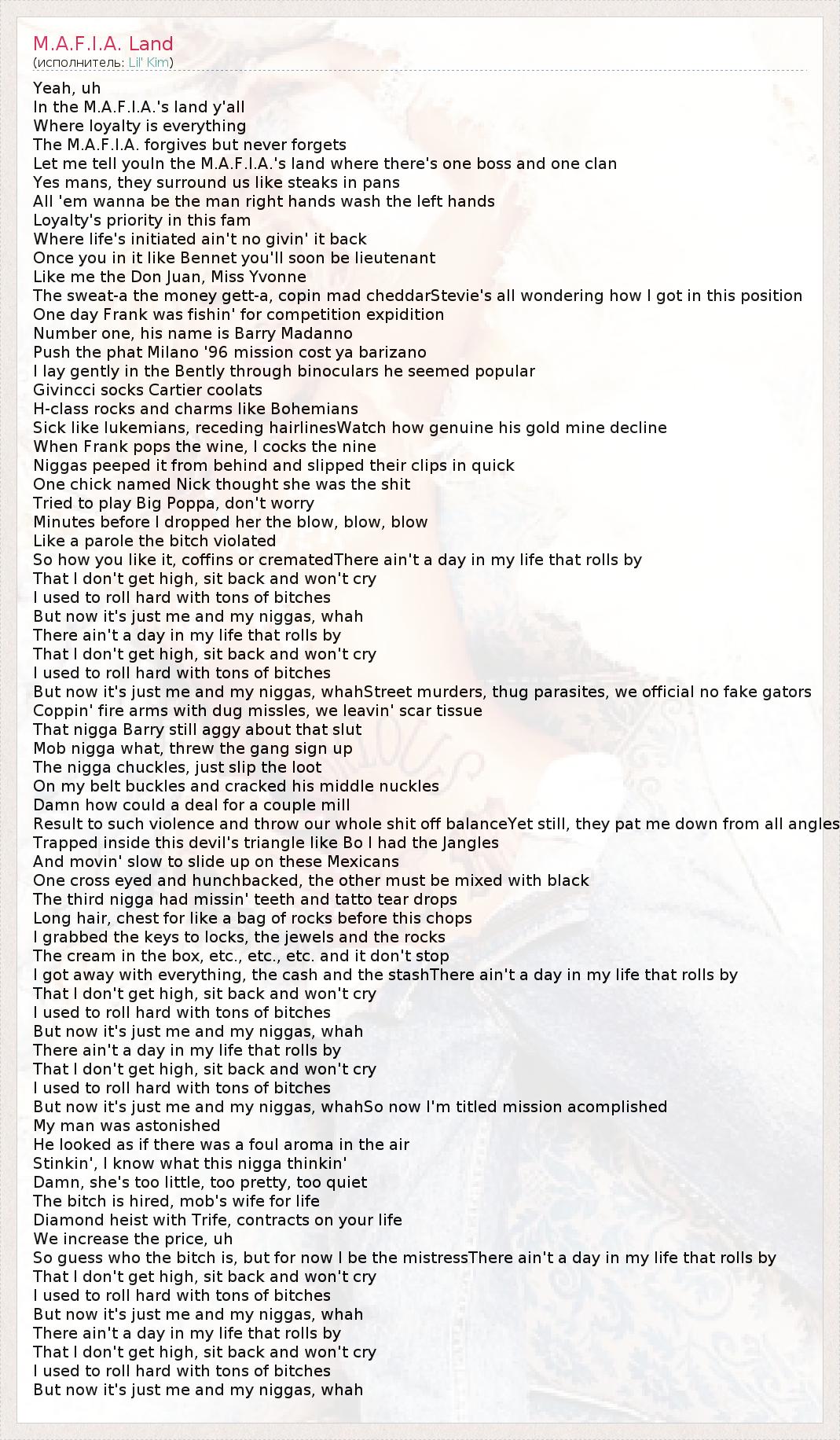 А как ты думаешь, о чем песня "M.A.F.I.A. Land" ?
