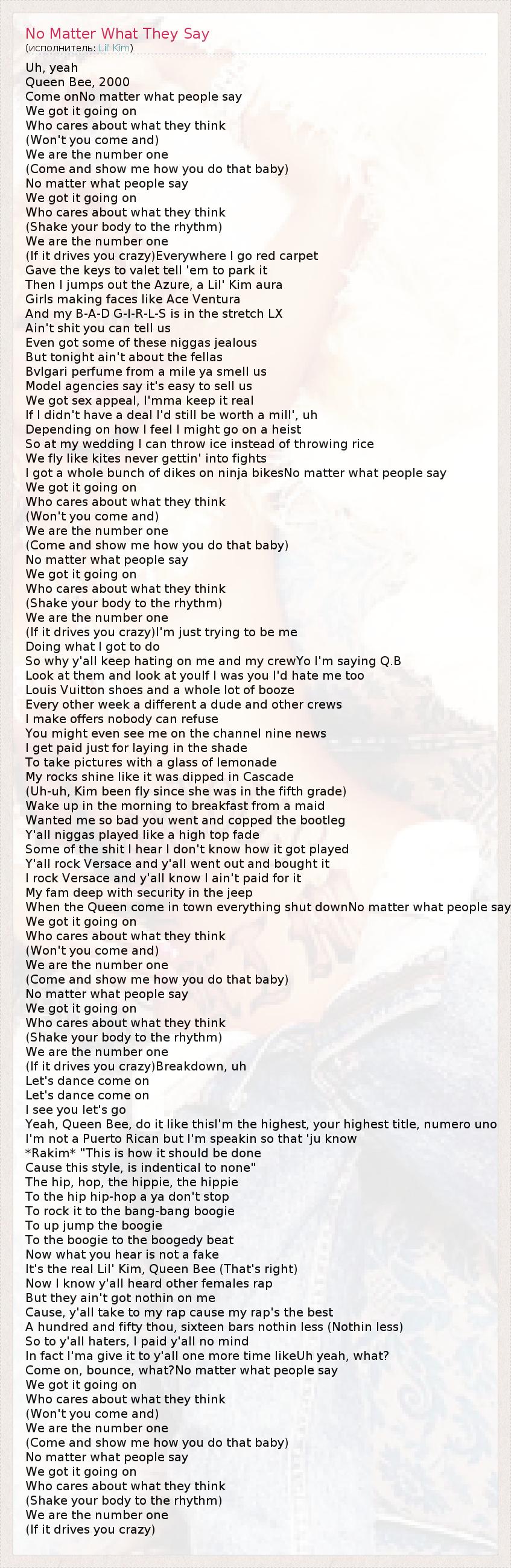 ГлавнаяИсполнителиLil' KimNo Matter What They Say