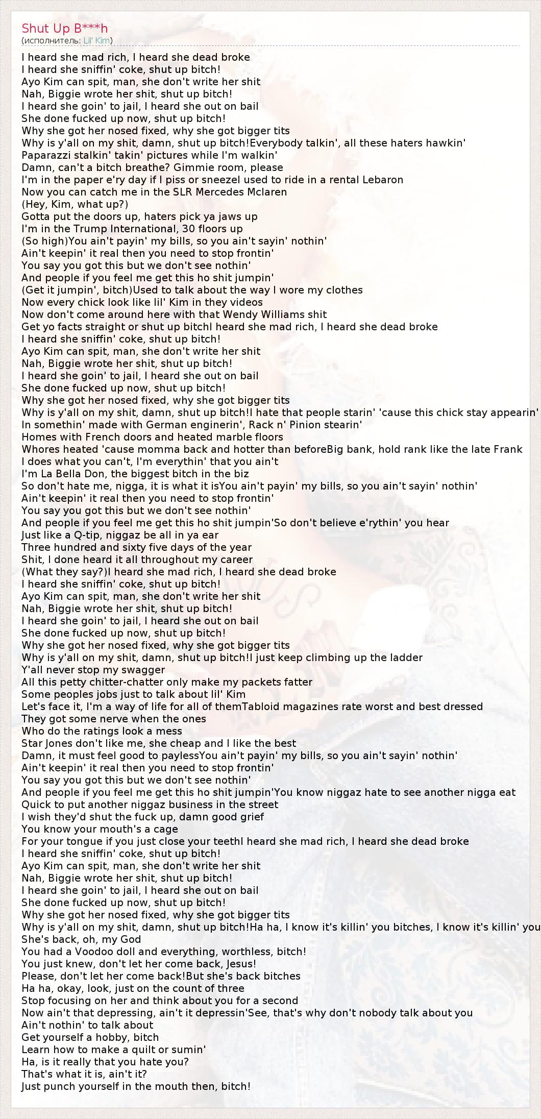 А как ты думаешь, о чем песня "Shut Up B***h" ?