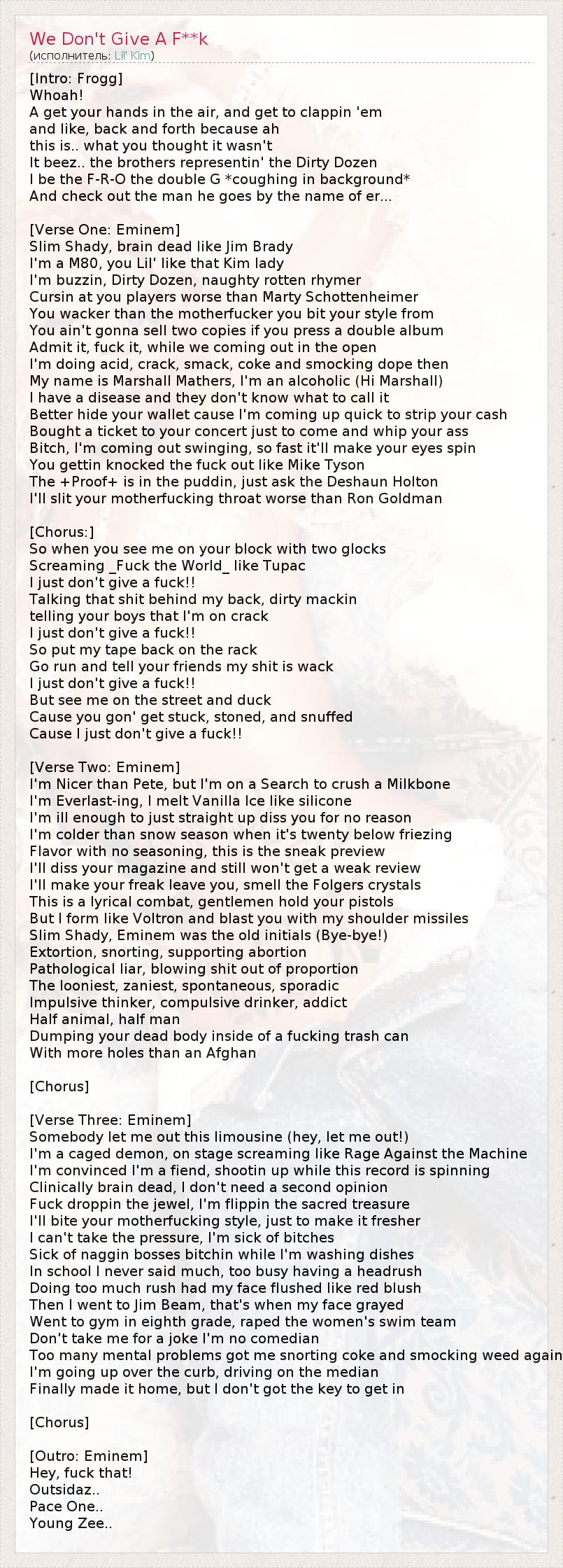 А как ты думаешь, о чем песня "We Don't Give A F**k" ?
