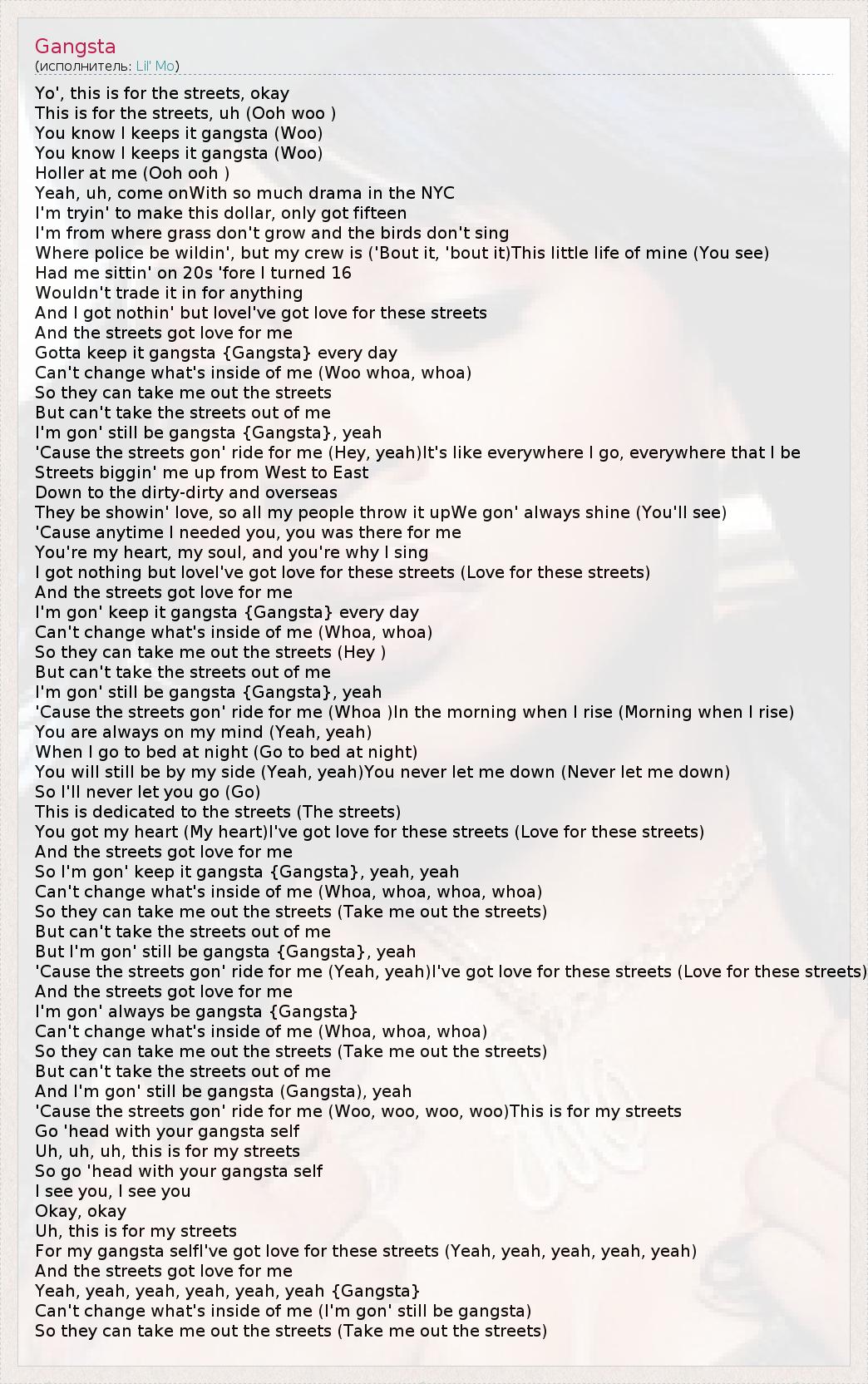 So I'm gon' keep it gangsta {Gangsta}, yeah, yeah